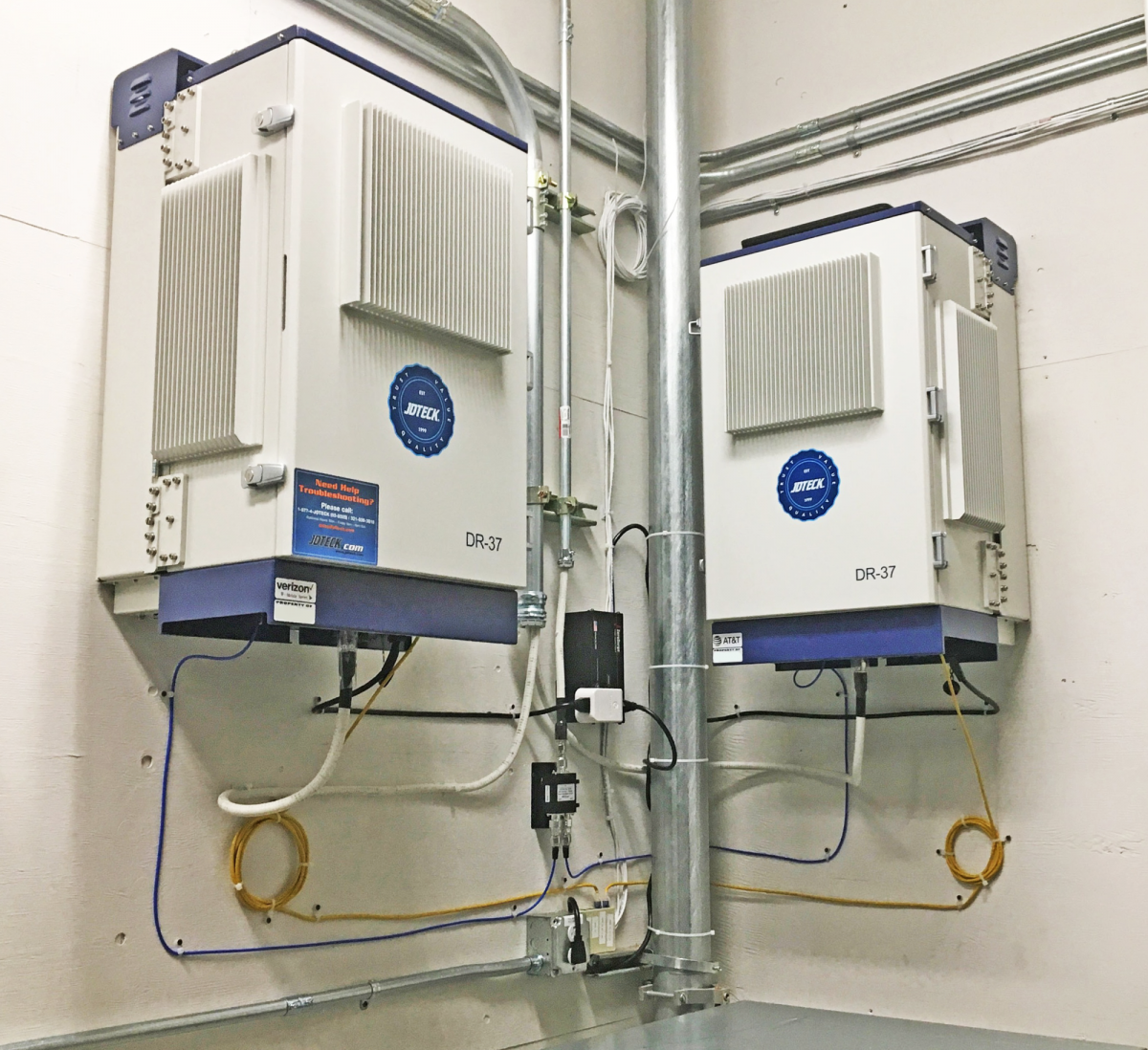 Consumer grade quad band repeater installed in comm room. JDTECK ensures that all approved techs maintain the highest quality standards when completing a system deployment.