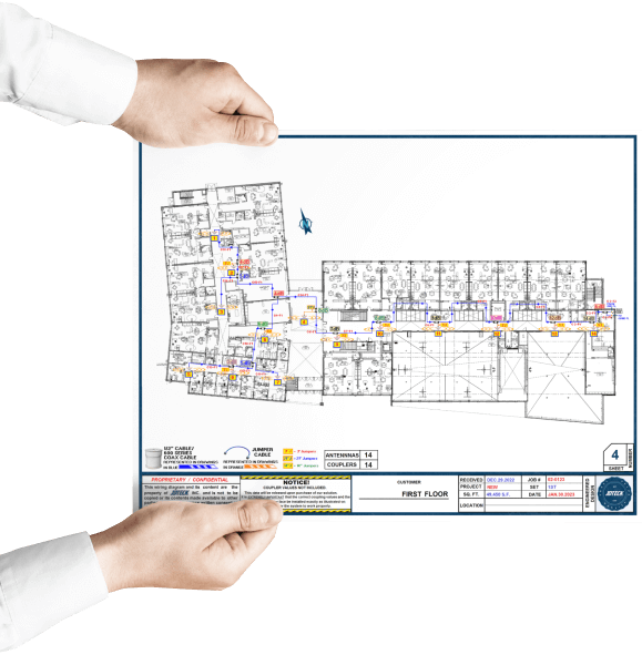 JDTECK’s takes DAS engineering to another level. All our engineered designs are very detailed and easy to follow. All our DAS shipments include these easy-to-follow wiring diagrams which our techs use to deploy our solutions with great ease. This leaves little to no room for error and virtually eliminates troubleshooting after the system is commissioned. With JDTECK, you have exceptional documentation of the system we have deployed at your facility. This makes life easy for everyone including your facilities team, so they are fully aware of where all the hardware and components are located.
